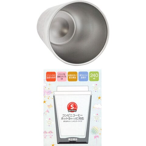 スヌーピー 24 コンビニコーヒー 真空断熱ステンレスタンブラー (S) 240ml STCV1 【コップ コンビニホットコーヒーSサイズ用 保温 保冷 スケーター】 キッチン用品で国内大手のスケーター株式会社の商品です! コンビニやコーヒーショップのコーヒーカップ(ホットSサイズ)がすっぽり入る保温ステンレスタンブラー! コンビニエンスストア大手3社のサイズに対応! ※各社の仕様変更などにより、カップが入らない場合があります。 真空二層構造でしっかり温度をキープしてくれるので、最後まで美味しくいただけます。 結露も防ぐので、水滴でテーブルなどを汚す心配もありません。 また、直接コーヒーやお茶など、飲み物を注いで保温保冷マグとしてもご使用いただけます。 底面は滑りにくい底板付きで安心です。 【商品サイズ(約)】 サイズ:直径76×高さ96mm 容量:240ml 重量:125g 【品質表示】 本体:ステンレス鋼 底板:熱可塑性エラストマー 保温効力…44度以上(1時間) 保冷効力…7.5度以下(1時間) ※カップの形状・サイズによっては入らない場合もありますので、ご了承ください。 【PEANUT SNOOPY コンビニホットコーヒーSサイズ用 保温保冷】 ■メーカー:スケーター(SKATER) |