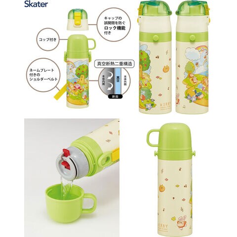 星のカービィ (ピクニック) 水筒 2WAYステンレス水筒 コップ付き 430ml~470ml SKDC4 【真空二層構造 保冷 保温 直飲み グッズ 雑貨 スケーター】 キッチン用品で国内大手のスケーター株式会社の商品です! 学校によっては水筒のタイプ指定がある場合も…。 そんな時には2通りの使い方ができるこちらをオススメ★ 2種類ある飲み口を付け替えて、 直接口を付けて飲めるダイレクト飲みタイプと、 温かい飲み物もOKのコップ飲みタイプで使い分け! そのまま飲めるダイレクトキャップユニットには 誤作動による開閉を防ぐロック機能付き。 氷が入れやすいワイド口径。 ネームプレート付きのショルダーベルト& お名前シール付き。 真空二層構造なので、保冷・保温効果が長持ち♪ 保冷効力:8度以下(6時間) 保温効力:45度以上(24時間)※コップ飲み時のみ ◆電子レンジ、食洗機、乾燥機には【使用不可】 ○容 量:ダイレクトタイプ:470ml :コップ飲みタイプ:430ml ○商品サイズ: 約 直径68mm×高さ230mm ○重 量:ダイレクトタイプ:295g :コップ飲みタイプ:290g 【真空二層構造 保冷 保温 直飲み グッズ 雑貨 スケーター】 ■メーカー:スケーター(Skater) |