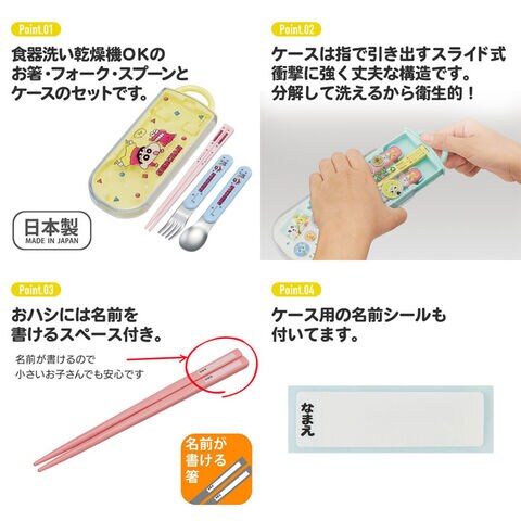 クロミ (ビッグリボン) 抗菌 食洗機対応 スライド式トリオセット (箸 フォーク スプーン ケース お名前シール付属) TACC2AG 【サンリオ おはし 給食 お弁当】 キッチン用品で国内大手のスケーター株式会社の商品です! 食器洗い乾燥機OKのお箸・フォーク・スプーンとケースのセットです。 ケースは指で引き出すスライド式で、衝撃に強く丈夫な構造です。 ケースは分解して洗えるから衛生的。 おハシには名前を書けるスペース付き。 ケース用の名前シールも付いてます。 【商品サイズ(約)】 ケースサイズ:198×76×17mm 箸の長さ:16.5cm スプーン・フォーク:全長13cm 重さ:150g 【品質表示(耐熱温度)】 フタ・ハシ:AS樹脂(耐熱温度100度) 本体:ポリプロピレン(耐熱温度140度) スプーン・フォーク先:ステンレス鋼 スプーン・フォーク持ち手:ABS樹脂(耐熱温度100度) ●日本製 【サンリオ おはし 給食 お弁当 遠足 カトラリー グッズ 雑貨】 ■メーカー:スケーター(Skater) |