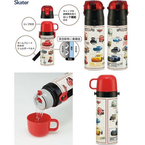 【送料無料!】ディズニー カーズ 25 水筒 2WAYステンレス水筒 コップ付き 430ml~470ml SKDC4 【マックイーン 真空二層構造 保冷 保温 直飲み グッズ 雑貨 スケーター】