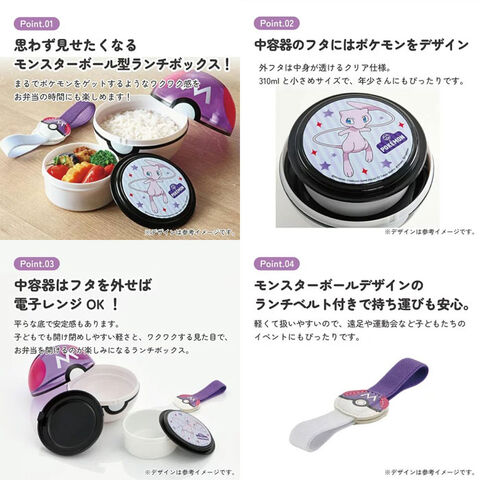 ポケットモンスター ポケモン マスターボール型 お弁当箱 LMS3 【電子レンジ対応 モンスターボール型 丸形 ランチボックス 給食 遠足 子供用 キッズ】 キッチン用品で国内大手のスケーター株式会社の商品です! 大人気!ポケモンの「マスターボール」のお弁当箱です。 310mlと小さめのサイズなので年少さんにピッタリ★ お弁当の時間が楽しみになりますね♪♪ 容器本体はフタを外して電子レンジOK! 底は平たくなっているのでころがりません! また、ランチボックス以外にもお使い頂けます! お菓子を入れてプレゼントに♪ 小物を入れて、お部屋をかわいく飾ったり♪ ポケットモンスターのぬいぐるみやフィギュアをいれて GETした風の飾りもたのしいですね! 紫のフタ部分はクリア仕様になっているので、中身が透けてみえます。 写真映えにもぴったり★インテリアや結婚式やパーティの飾りにしてもとっても可愛い! インパクトがあるので、プレゼントや景品ギフトにも喜ばれるかも!!! 【商品サイズ(約)】 サイズ:直径110mm×高さ104mm 総容量 :310ml(本体170ml/容器本体140ml) 総重量:165g 【品質表示】 本体:ABS樹脂(耐冷温度-20度/耐熱温度80度) フタ:AS樹脂(耐冷温度-20度/耐熱温度80度) 容器本体・容器フタ:ポリプロピレン(耐冷温度-20度/耐熱温度140度) ○ご使用上の注意 パッキンは付いておりませんので、密封機能はありません。 ※自動食器洗浄機・食器乾燥機の使用はしないでください。変形・破損の原因となります。 ※電子レンジ使用の際は、フタ・本体・容器フタを外してください。 ■メーカー:スケーター(SKATER) |