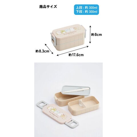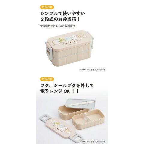 すみっコぐらし (ドローイング) お弁当箱 抗菌 箸付き 2段タイトランチボックス 600ml YZW3 【二段弁当箱 電子レンジ対応 グッズ 雑貨 給食 遠足 スケーター】 キッチン用品で国内大手のスケーター株式会社の商品です! シンプルで使いやすい2段式のお弁当箱。 中蓋に収納できる15cmのお箸付き。 仕切り板付き。 フタ、シールブタを外して電子レンジOK! 【商品サイズ】 サイズ:約 横176×奥行83×高さ80mm 総容量:600ml(上段300ml/下段300ml) 【品質表示(耐熱温度)】 フタ・箸:AS樹脂(耐熱温度80度) 本体・仕切:ポリプロピレン(耐熱温度140度) シールブタ:EVA樹脂(耐熱温度60度) 止具:ABS樹脂(耐熱温度80度) パッキン:シリコーンゴム(耐熱温度140度) ※自動食器洗浄機、食器乾燥機の使用はしないでください。 ※熱い食品を入れた時は、必ず冷ましてからフタをしてください。 ●日本製 ■メーカー:スケーター(SKATER) |