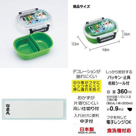 【送料無料!】マインクラフト (Minecraft 26) ふわっとフタ タイトランチボックス 360ml お弁当箱 QAF2BA 【マイクラ 食洗機対応 小判型 グッズ 給食 遠足 子供用 大人用】