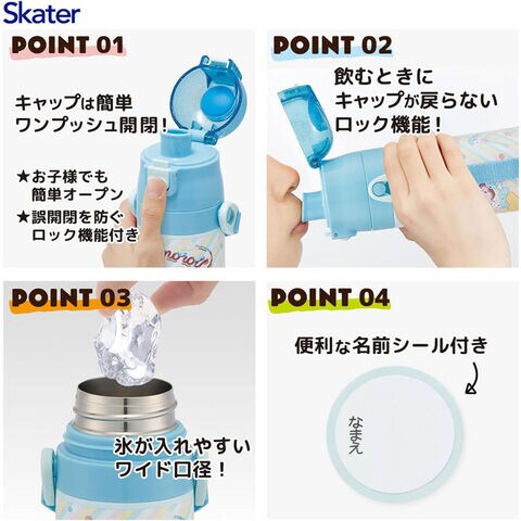 シナモロール (Fancy Snacks Sweets サンリオ) 水筒 ロック付きワンプッシュダイレクトステンレスボトル 470ml SDC4 【シナモン 直飲み保冷ダイレクトボトル】 キッチン用品で国内大手のスケーター株式会社の商品です! ネームプレート付きのショルダーベルト。 真空二層構造なので、保冷効果が長持ち♪ ※火傷の恐れがありますので熱い飲み物を入れないでください。 ・ワンプッシュで簡単オープン ・誤作動でキャップの開閉を防ぐロック機能付き ・ダイレクトでそのまま飲めるキャップユニット ・飲む時にキャップの戻りを防ぐロック設計 ・氷が入れやすい広口タイプ 【商品サイズ】 約 直径68mm×高さ230mm 容量:470ml 【品質表示】 内びん、口がね:ステンレス鋼 胴部:ステンレス鋼(アクリル塗装) キャップ:飽和ポリエステル(PET樹脂) フタ:ポリプロピレン パッキン:シリコーン 底板:エラストマー樹脂 保冷効力:8度以下(6時間) ※電子レンジ、食洗機、乾燥機には使用しないでください。 【シナモン ファンシースナックスイーツ 直飲み ショルダーストラップ付き 保冷ダイレクトボトル グッズ】 ■メーカー:スケーター(SKATER) |