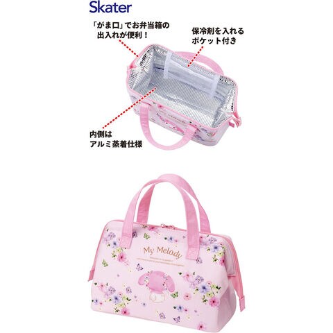 マイメロディ (パステルビビットな水彩花柄 サンリオ) 保冷 保温 がま口型ランチバッグ お弁当袋 KGA1 【ピンク お弁当箱入れ ランチトートバッグ 給食】