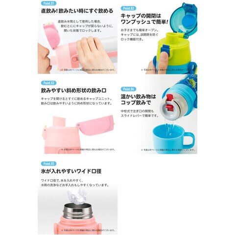 ディズニー アナと雪の女王 26 水筒 2WAYステンレス水筒 コップ付き 430ml~470ml SKDC4 【真空二層構造 保冷 保温 直飲み グッズ 雑貨 スケーター】 キッチン用品で国内大手のスケーター株式会社の商品です! 2種類ある飲み口を付け替えて、 直接口を付けて飲めるダイレクト飲みタイプと、 温かい飲み物もOKのコップ飲みタイプで使い分け! そのまま飲めるダイレクトキャップユニットには 誤作動による開閉を防ぐロック機能付き。 氷が入れやすいワイド口径。 ネームプレート付きのショルダーベルト& お名前シール付き。 真空二層構造なので、保冷・保温効果が長持ち♪ 保冷効力:8度以下(6時間) 保温効力:45度以上(24時間)※コップ飲み時のみ ◆電子レンジ、食洗機、乾燥機には【使用不可】 ○容 量:ダイレクトタイプ:470ml :コップ飲みタイプ:430ml ○商品サイズ: 約 直径68mm×高さ230mm ○重 量:ダイレクトタイプ:295g :コップ飲みタイプ:290g 【真空二層構造 保冷 保温 直飲み グッズ 雑貨 スケーター】 ■メーカー:スケーター(SKATER) |