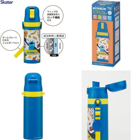 パペットスンスン 水筒 ロック付きワンプッシュダイレクトステンレスボトル 470ml SDC4 【直飲み ショルダーストラップ付き 保冷ダイレクトボトル グッズ】 キッチン用品で国内大手のスケーター株式会社の商品です! ネームプレート付きのショルダーベルト。 真空二層構造なので、保冷効果が長持ち♪ ※火傷の恐れがありますので熱い飲み物を入れないでください。 ・ワンプッシュで簡単オープン ・誤作動でキャップの開閉を防ぐロック機能付き ・ダイレクトでそのまま飲めるキャップユニット ・飲む時にキャップの戻りを防ぐロック設計 ・氷が入れやすい広口タイプ 【商品サイズ】 約 直径68mm×高さ230mm 容量:470ml 【品質表示】 内びん、口がね:ステンレス鋼 胴部:ステンレス鋼(アクリル塗装) キャップ:飽和ポリエステル(PET樹脂) フタ:ポリプロピレン パッキン:シリコーン 底板:エラストマー樹脂 保冷効力:8度以下(6時間) ※電子レンジ、食洗機、乾燥機には使用しないでください。 【直飲み ショルダーストラップ付き 保冷ダイレクトボトル グッズ】 ■メーカー:スケーター(SKATER) |