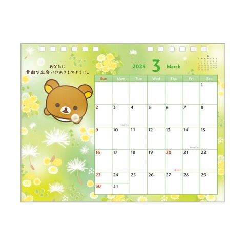 リラックマ 卓上カレンダー (つぶやき) 2025年版 CD39301 【メッセージカード付 デスクトップカレンダー 机上 りらっくま 熊 サンエックス San-X】 大きな書き込みスペースと、デスクに置けるコンパクトさが一番人気! 卓上カレンダーにリラックマが今年も登場☆ リラックマの表情とつぶやきが楽しめる商品になっています♪ 自分の状況を伝えるメッセージカードも付いているので、職場やお勉強机に置いても◎ リラックマと一緒に毎日を楽しもう☆ ■サイズ セット:約177×180×5mm ■仕様 14枚、上質紙、メッセージカード付、年間カレンダー付 ■メーカー:サンエックス |