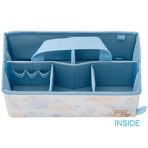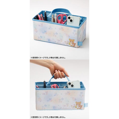 リラックマ マルチデスクボックス (雨のち晴れのリラックマ) FB55701 【卓上収納ケース ペンスタンド 文房具 リモコンケース グッズ 雑貨 プレゼント ギフト】 気持ちが落ち込むとき、心は雨空のようにどんより。もしもリラックマたちが優しく傘を差し伸べてくれたなら…? 「雨のち晴れのリラックマ」テーマから、マルチデスクボックスができました。 マチが広くて収納力抜群♪仕切りは取り外しできるタイプ。 あなたの心が雨模様なときも、曇りのときも、リラックマはどんなあなたも受け止めてそっと寄り添います。 ■サイズ 約120×270×130mm ■素 材 合皮製、持ち手付 ■メーカー:サンエックス |
