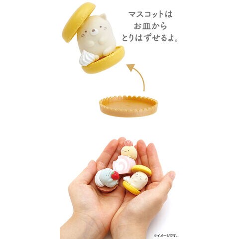 「すみっコぐらしプチコレクション」から、マカロン姿のねこのマスコットができました。お皿のマスコットとのセット!
