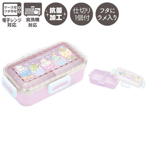 【送料無料!】すみっコぐらし 4点ロックふわっとランチボックス(ダイヤカット・B) 530ml 仕切り付き お弁当箱 KA31802 【抗菌 グッズ 雑貨 給食 遠足 子供用 大人用】
