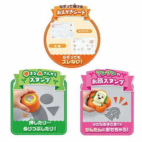 ワンワンとうーたん のびのび おえかきボード 【なんどでも消せる マグネットお絵描き 磁石 おえかきボード 知育玩具 ジョイパレット】 何度も描いたり消したり自由にお絵かきを楽しもう! せんせい等と同様のマグネットお絵かきボード系の玩具です。 なんどもペンで描いたり消したりスタンプを押したり、自由に描きながら表現力を育んでくれるおえかきボードです。 小さなお子さまでも簡単にワンワンの顔スタンプを押したり、おえかきシートでキャラクターや図形を描けます。 おえかきシートは、くっきりはっきりなめらかに描けるので、お子様のおえかきレベルが上がっても長く楽しめます。 【セット内容】 本体、マグネットスタンプ3個(まる、さんかく、ワンワンとお顔)、おえかきシート2枚(キャラクター、形・線)、マグネットペン1本 ■対象年齢 1.5才~ ■電池 単3×3本(別売) ■メーカー:ジョイパレット |