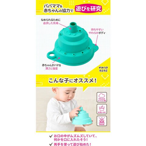 ピープル 赤ちゃん観察シリーズ 「歯が生え始める頃」の歯ぐきとお手てにぴったり やみつきカミカミ TB-160 【ベビートイ 赤ちゃん用玩具 知育玩具 出産祝い】 「歯が生え始める頃」の歯ぐきとお手てにぴったり やみつきカミカミ ネームホルダ-から誕生。 赤ちゃんの好きなやわらかくて薄いなめ心地と持ちやすさにこだわったおもちゃです。 ◆ふしぎな形は好奇心の形! ≪目≫赤ちゃんの視力に合わせて選んだ鮮やかカラー ≪歯≫この薄さと強度がハマる噛み心地の秘訣 ≪口≫なめられるために追求した先端 ≪口・歯≫全方位なめ噛み対応型の新設計 ≪手≫軽い力でも持ちやすい、やわらかボディ ≪指・歯≫つまんでも、噛んでもOK ・やわらかシリコン製 ・水洗いOK ・無塗装 ■対象年齢:6カ月以上 ■メーカー:ピープル |