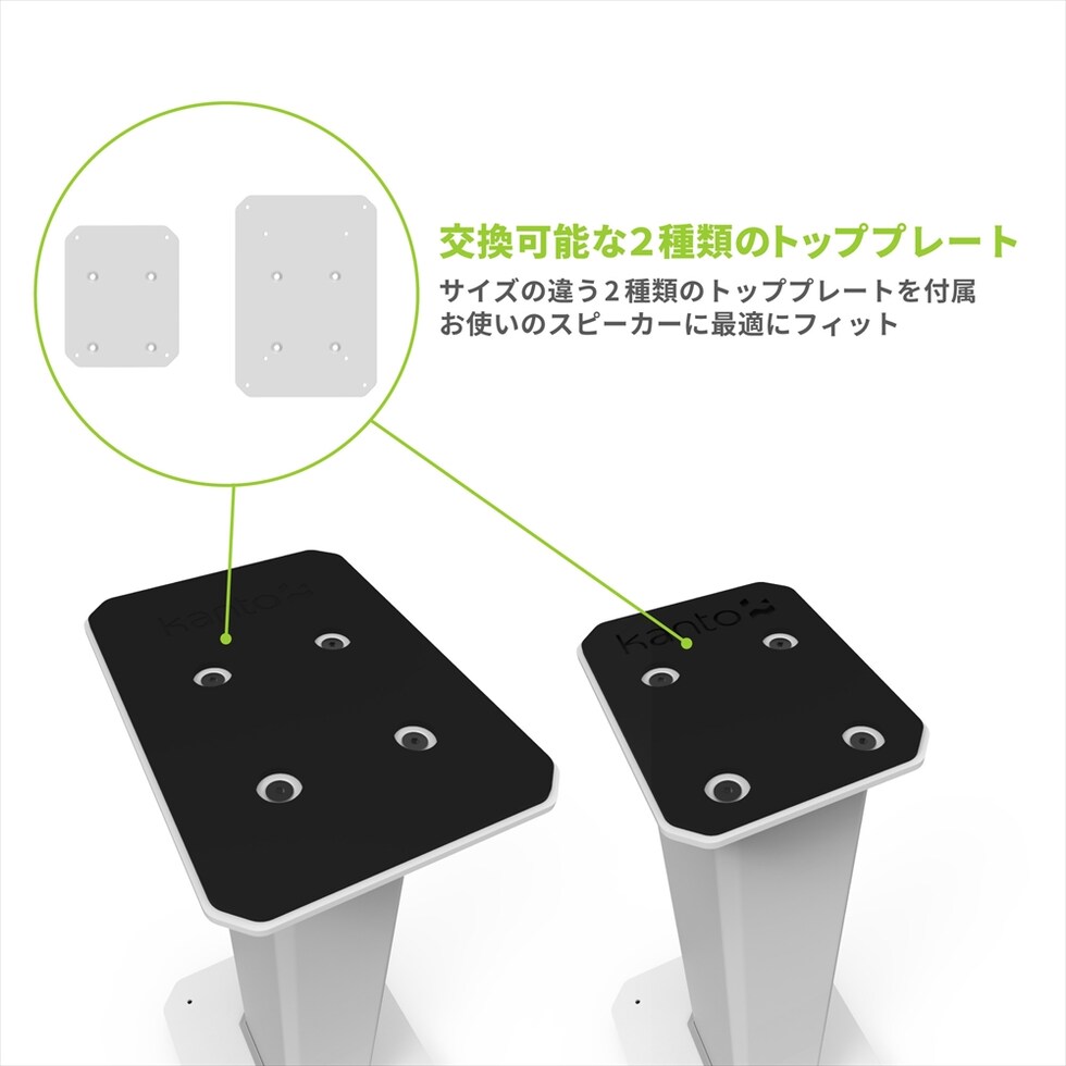 お好みのスピーカーに最適にフィットするよう、2種類のサイズのトッププレートを付属。