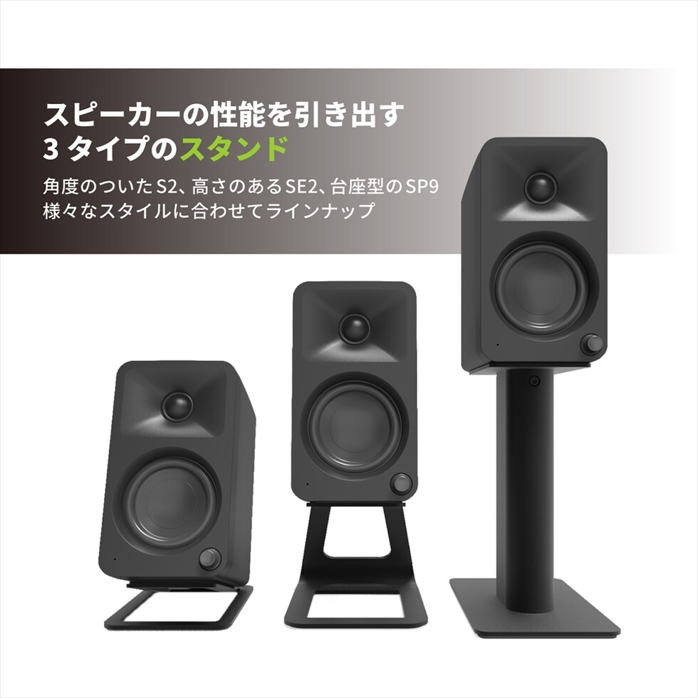 Kantoのスピーカースタンドと組み合わせると、見た目もサウンドもさらに良くなります。角度のついたS2、高さのあるSE2、台座スタイルのSP9からお選びください。