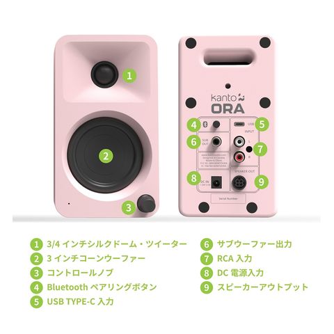 Kanto Audio デスクトップ アクティブ PCスピーカー ORA マットピンク USB接続 Bluetooth接続 RCA アナログ DAC