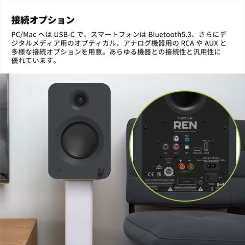 Kanto Audio アクティブスピーカーシステム REN マットブラック HDMI ARC USB接続 Bluetooth 光デジタル RCA AUX