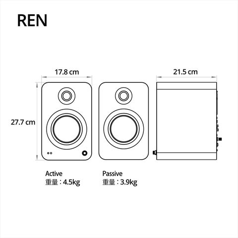 ● 重量:(アクティブ) 4.5kg、(パッシブ)3.9kg、(箱入りペア):10.9kg