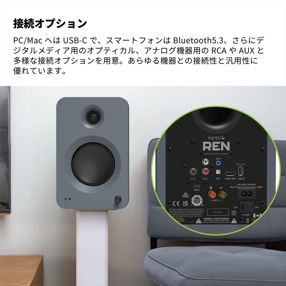 Kanto Audio アクティブスピーカーシステム REN マットグレー HDMI ARC USB接続 Bluetooth 光デジタル RCA AUX