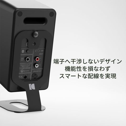 付属の1/4”-20ネジにより、スピーカー背面へシームレスに取り付けが可能。デスク上のスペースを有効活用し、すっきりとした美しい設置を実現します。安定性に優れたリアマウント構造を採用することで、スピーカーの存在感を引き立てる浮遊感のある佇まいを演出しながら、背面入力へのスムーズなアクセスも確保しています。