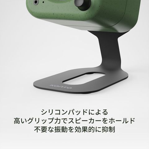シリコンパッドが高いグリップ力を発揮し、スピーカーをしっかりと保持。不要な振動を効果的に抑制することで、音の輪郭やバランスを損なうことなく、スピーカー本来のサウンドをクリアに再現します。