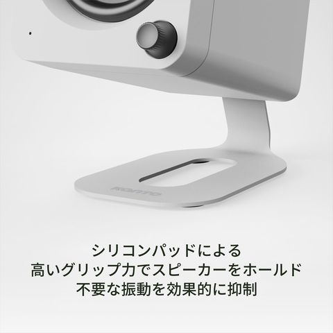 シリコンパッドが高いグリップ力を発揮し、スピーカーをしっかりと保持。不要な振動を効果的に抑制することで、音の輪郭やバランスを損なうことなく、スピーカー本来のサウンドをクリアに再現します。