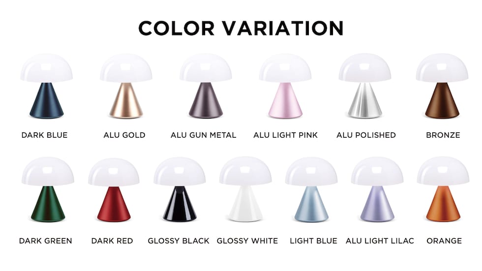 先見の明を持つデザイナーたちによって生み出されたMina。アルミニウム製の美しい台座に優雅に設置され、モダンさと洗練さを兼ね備えています。魅力的なカラーが揃い、自由に組み合わせて楽しめます。複数のランプを並べて独自のライティングを演出すれば、温かく楽しい雰囲気が空間に広がり、ゲストをもてなすときにも、日常のひとときを彩るときにも最適です。
