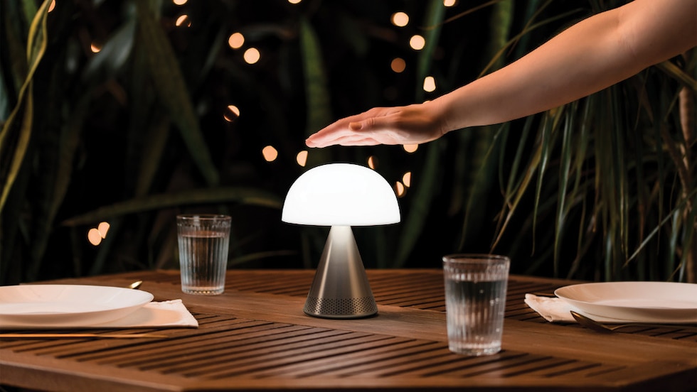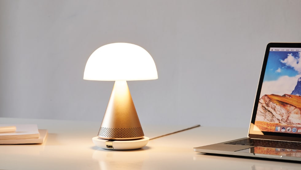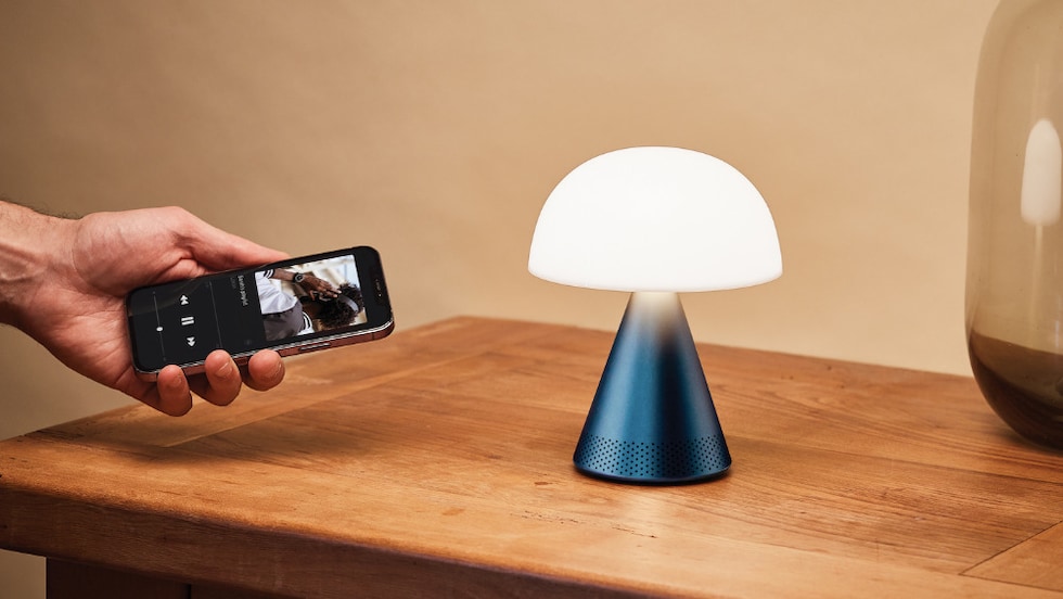 Mina L Audioは、光と音をスタイリッシュでコンパクトなデザインに融合。360° Bluetoothスピーカーを内蔵したポータブルLEDランプで、空間を本格的な光と音の体験に変えます。