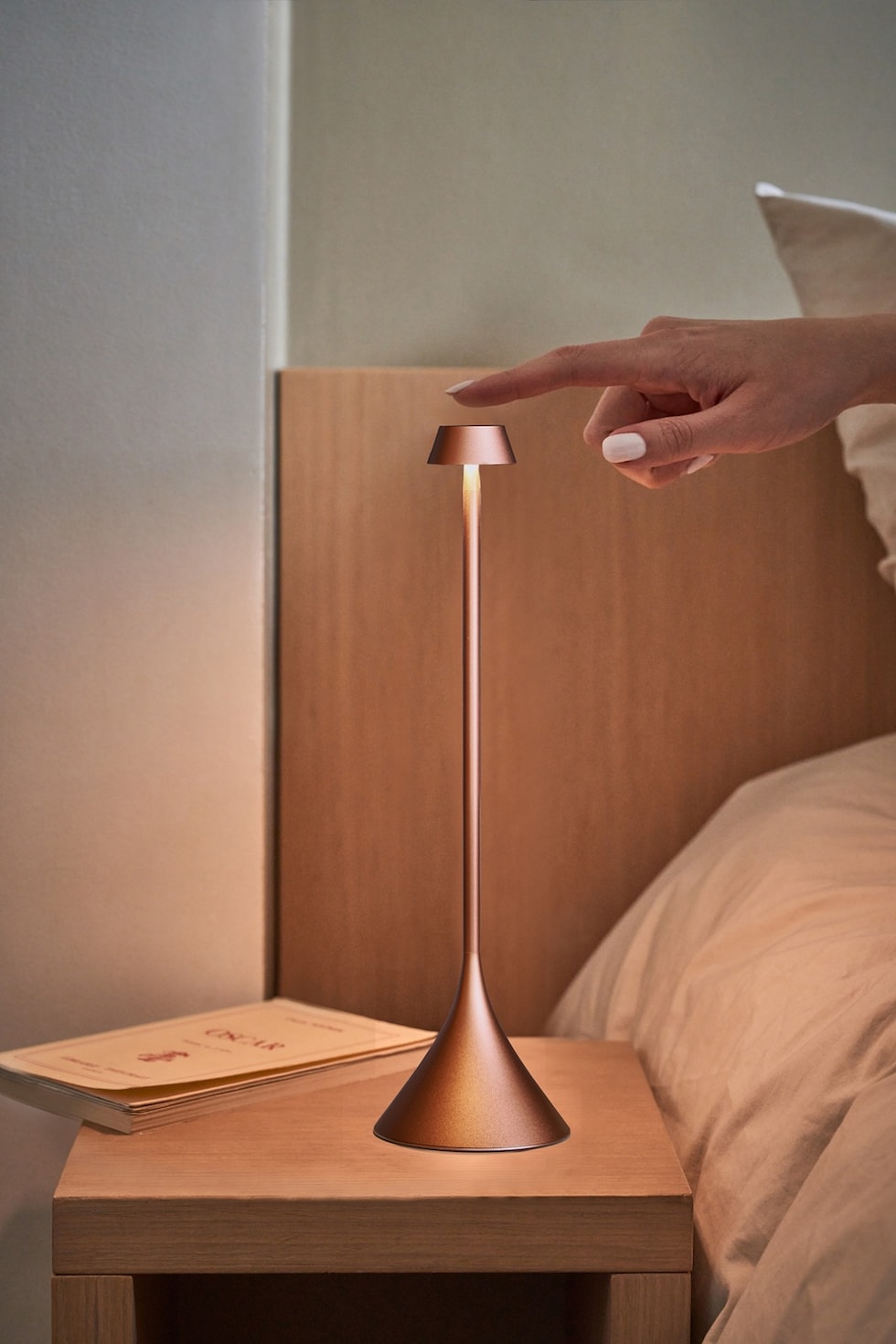 最大10時間のバッテリー寿命を持つSteliは、USB-Cまたはワイヤレスで簡単に充電できます。テラス、ダイニングテーブル、デスク、ベッドサイドなどの雰囲気を高めるのに最適で、どんな空間にもシームレスに溶け込みます。