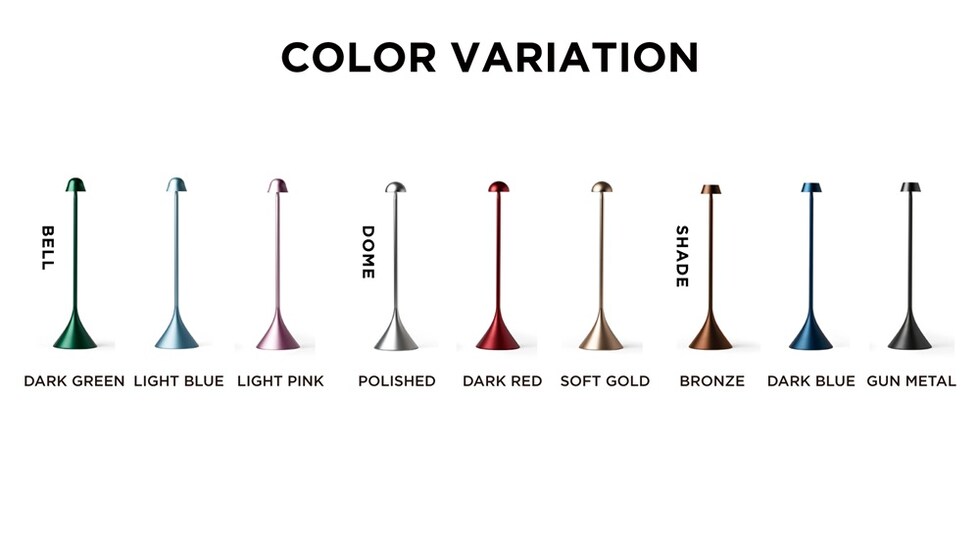 Steliは、9色の調節可能なLEDカラーを提供するスタイリッシュなテーブルランプで、ランプの上部をタッチするだけで簡単に操作できます。シェード、ベル、ドームの3つのモデルがあり、エレガントなアルミ仕上げが施されています。