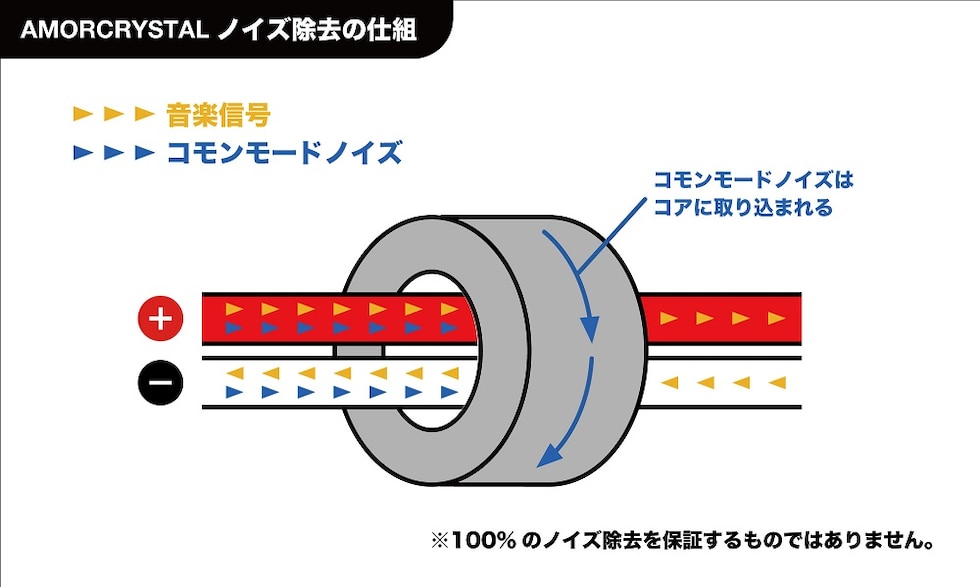 コア材は一般的に「アモルファスコア」「フェライトコア」「ナノクリスタルコア」の三種類に大別されます。アモルファスコアやフェライトコアは数MHz以上の高周波帯域に効果を発揮する一方で、Amorcrystal に採用されている「ナノクリスタルコア」は100kHz以上の幅広い帯域において優れた性能を示します。特筆すべきは、その透磁率の高さです。ナノクリスタルコアは他のコア材と比較して非常に高い透磁率を誇り、音楽信号そのものへの悪影響を極限まで抑えながら、信号に重畳した不要なノイズ成分だけを的確に低減します。その結果、音楽の持つ本来のエネルギーや細部のニュアンスが鮮明に引き出され、より自然で深みのあるサウンドが広がります。「Amorcrystal Split(for デジタル)」は、このナノクリスタルコアの特性を最大限に活かし、従来では実現できなかったクリアで透明感のある音楽再生を可能にします。音楽を愛するすべての人に、新たなリスニング体験をお届けします。