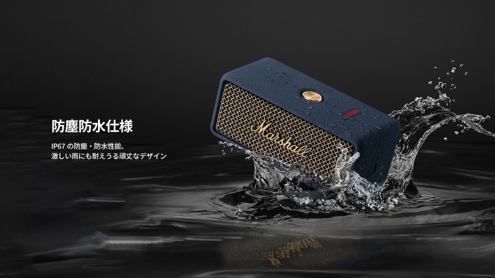 Emberton 3は防塵・防水機能を備え、最大約32時間の音楽再生が可能。どんなパーティーでも長持ちし、外出先でもパワフルな全方位サウンドをお届けします。Marshall独自のマルチディレクショナルサウンド「トゥルーステレオフォニック」を搭載し、優れた空間サウンドとバイノーラルサウンドを再現することで、どんな空間も音楽で包み込みます。