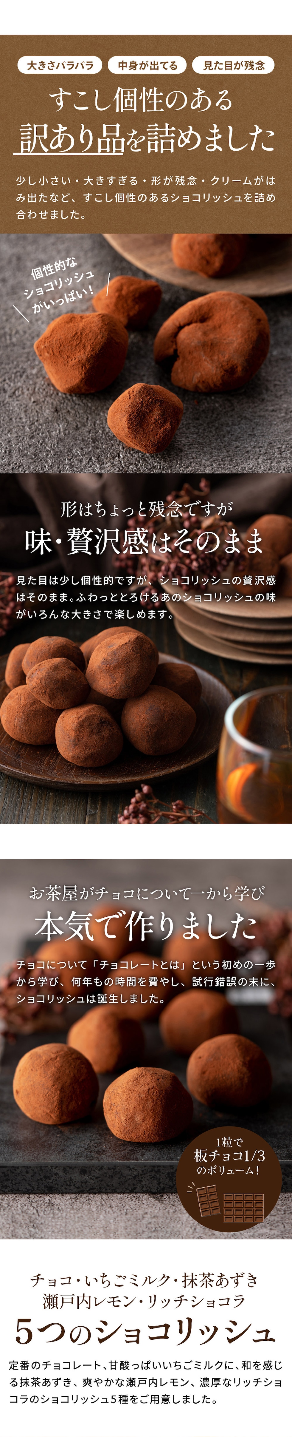 訳あり ショコリッシュ 生チョコ 個包装 小分け チョコレート トリュフ ギフト プレゼント スイーツ トリュフ 大容量 チョコレート リッチショコラ 濃厚ショコラ 【訳ありショコリッシュ5個×6袋】