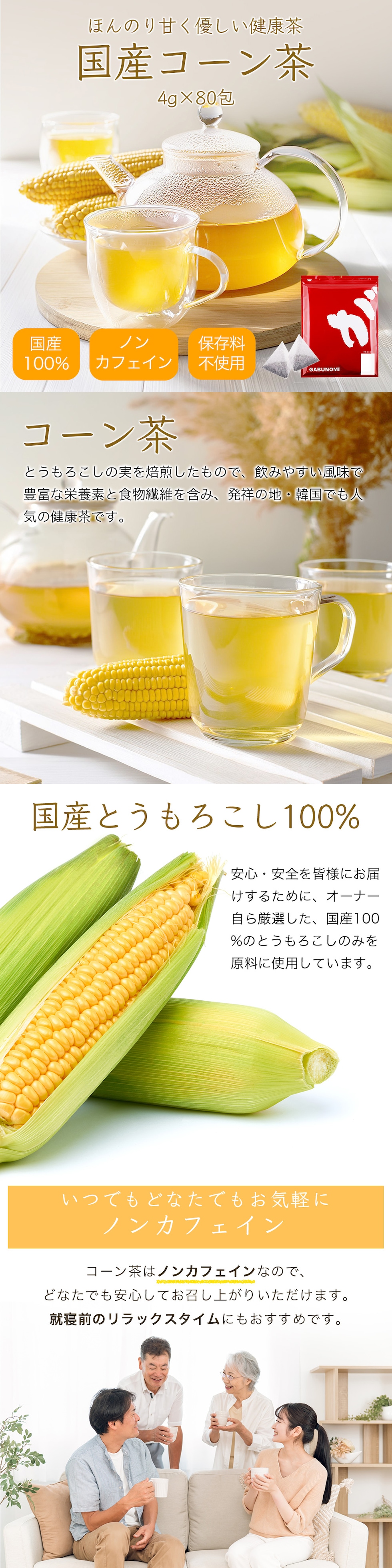国産コーン茶 ノンカフェイン お茶 健康茶 国産とうもろこし茶 コーン茶 とうもろこし茶 コーン とうもろこし ティーバッグ ティーパック パック 80包 オクスス茶 320g(4g×80包) 福袋 送料無料