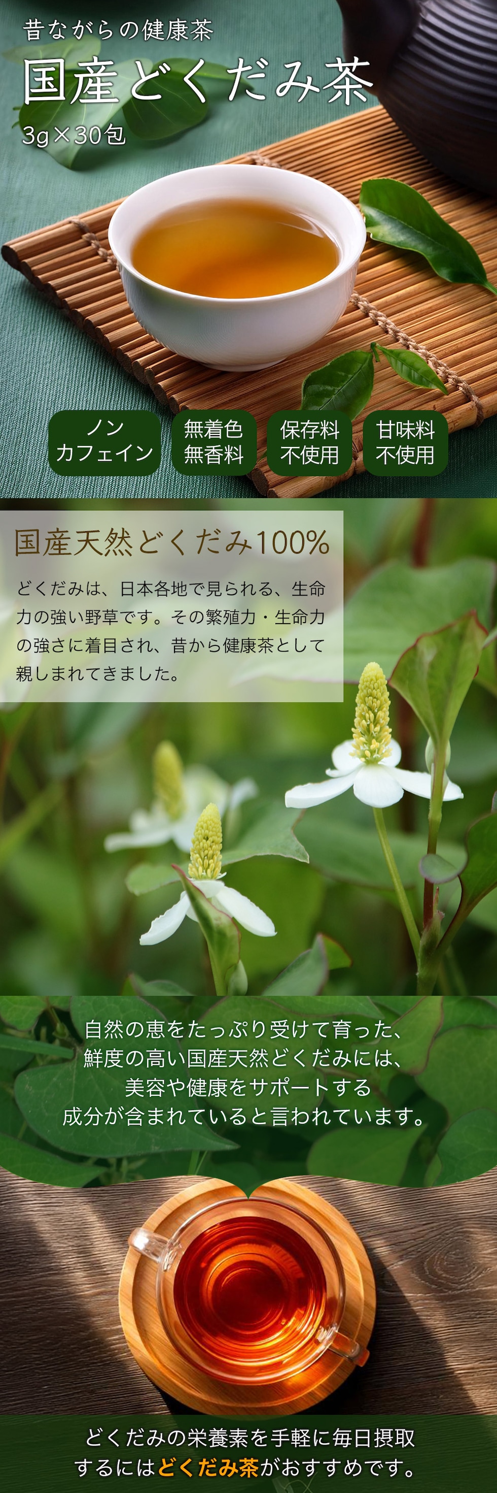 国産どくだみ茶 国産ドクダミ茶 どくだみ ドクダミ 国産 ノンカフェイン 30包 90g(3g×30包) お茶 健康茶 美容茶 野草茶 国産 植物由来 ティーバッグ ティーパック パック 少量パック お試し ふくちゃ