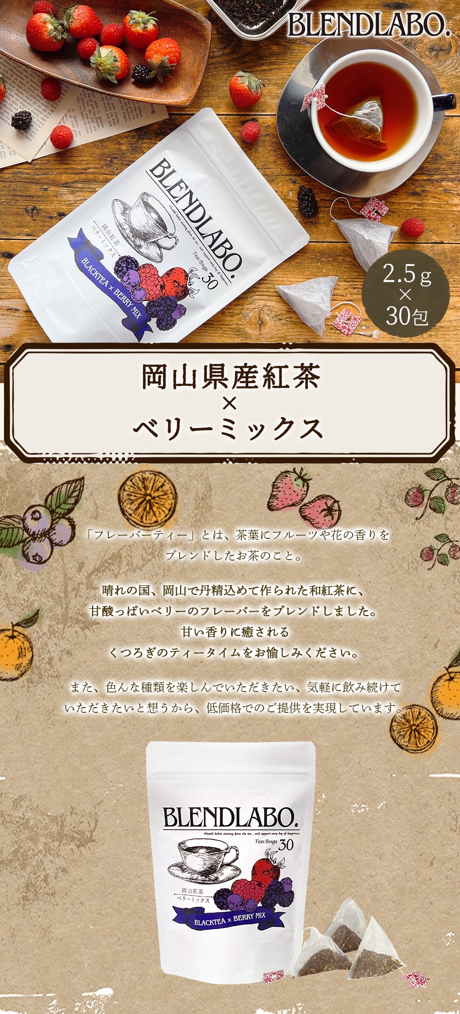 紅茶 フレーバーティー フルーツティー 国産紅茶 和紅茶 岡山県産 ベリーミックス ストロベリー ベリーティー ティーバッグ ティーパック パック 30包 ふくちゃ 国産 Blend LABO. flavored tea 送料無料