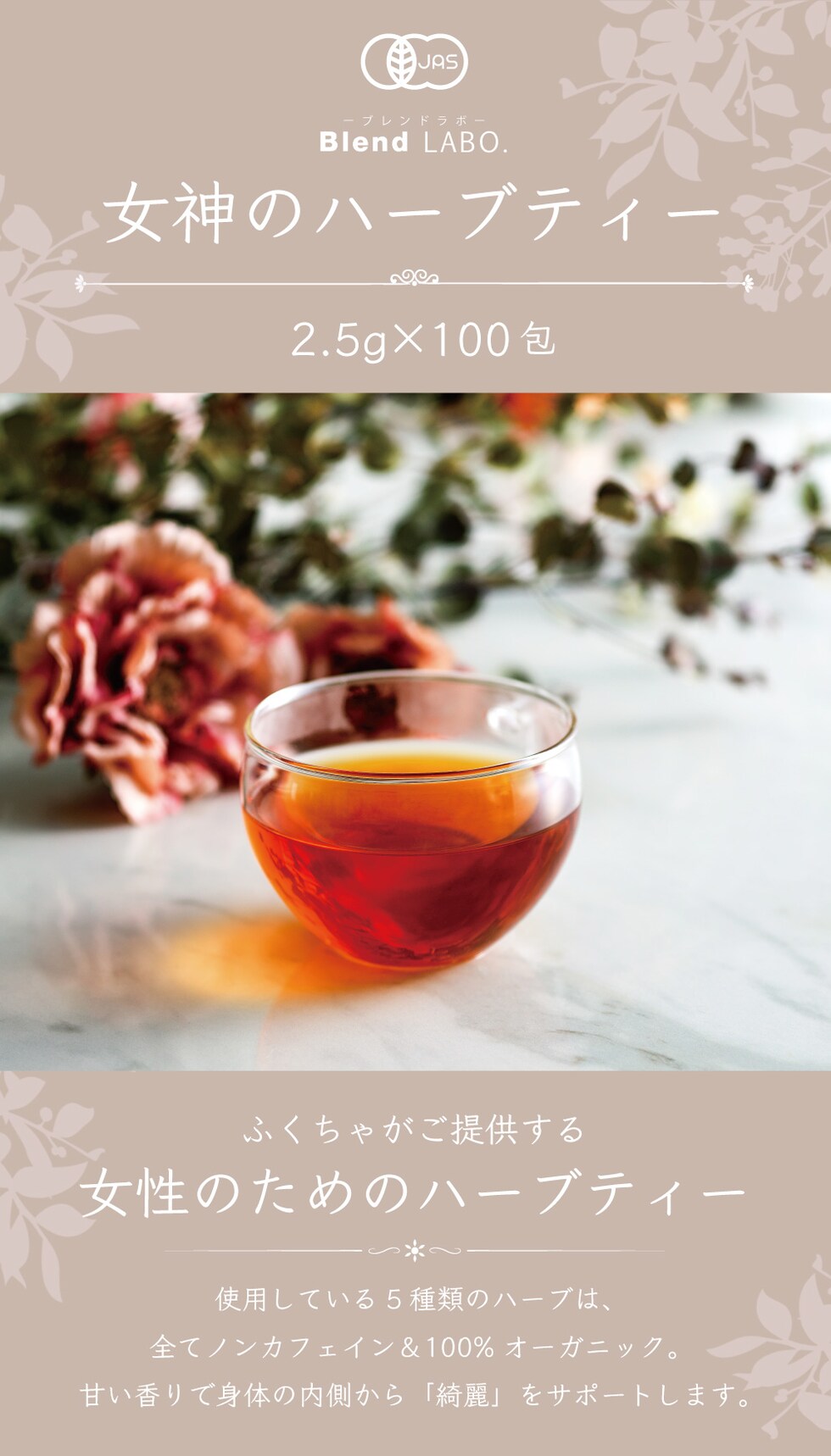 ハーブティー オーガニック 女神のハーブティー 植物由来 ティーバッグ ティーパック 2.5g×100包 パック ノンカフェイン 水出し ブレンド ティー 健康茶 美容茶 有機 JAS ハニーブッシュ ルイボスティー ハイビスカス ローズヒップ レモンマートル オーガニックハーブ お茶 大容量 福袋