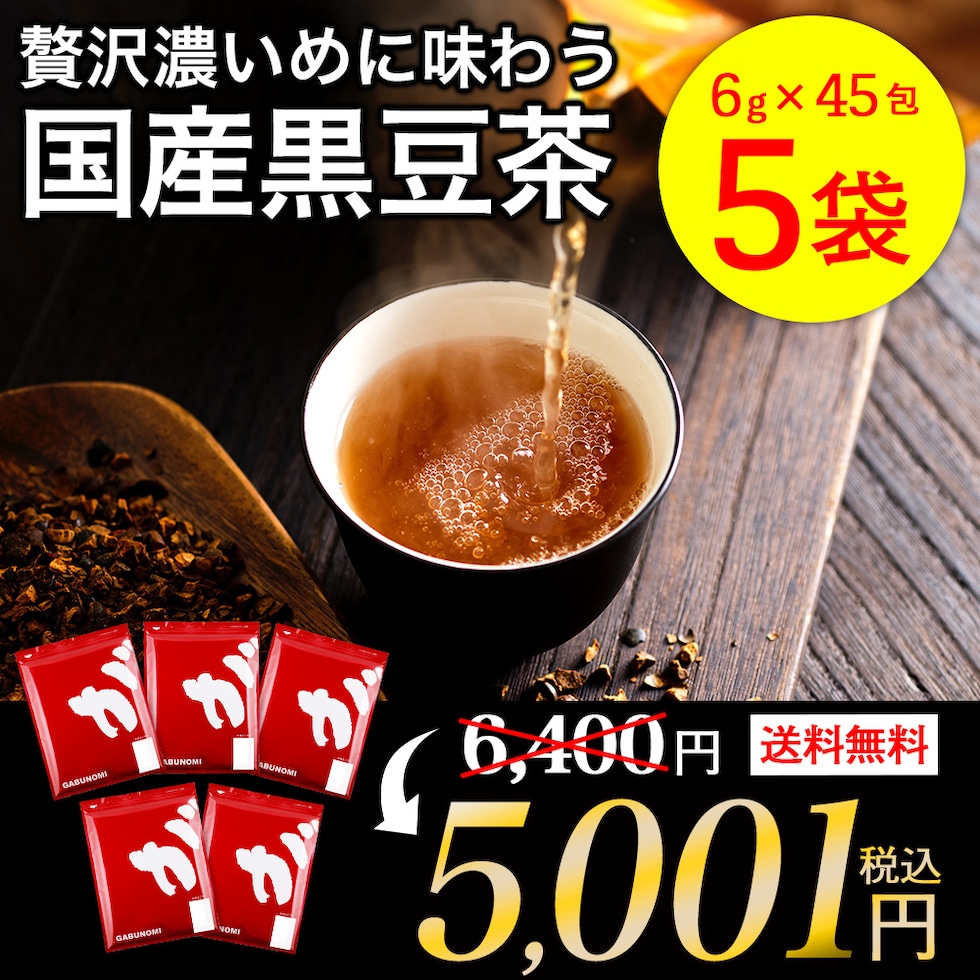 【通常6,400円→5,001円!】国産黒豆茶 福袋 国産 大容量 1,350g (6g×45包×5袋) ノンカフェイン 黒豆茶 植物由来 ティーバッグ ティーパック パック 黒豆 黒まめ茶 黒大豆 クロマメ茶 くろまめ茶 kuromame お茶 健康茶 豆茶 ふくちゃの福袋 人気健康茶 sp