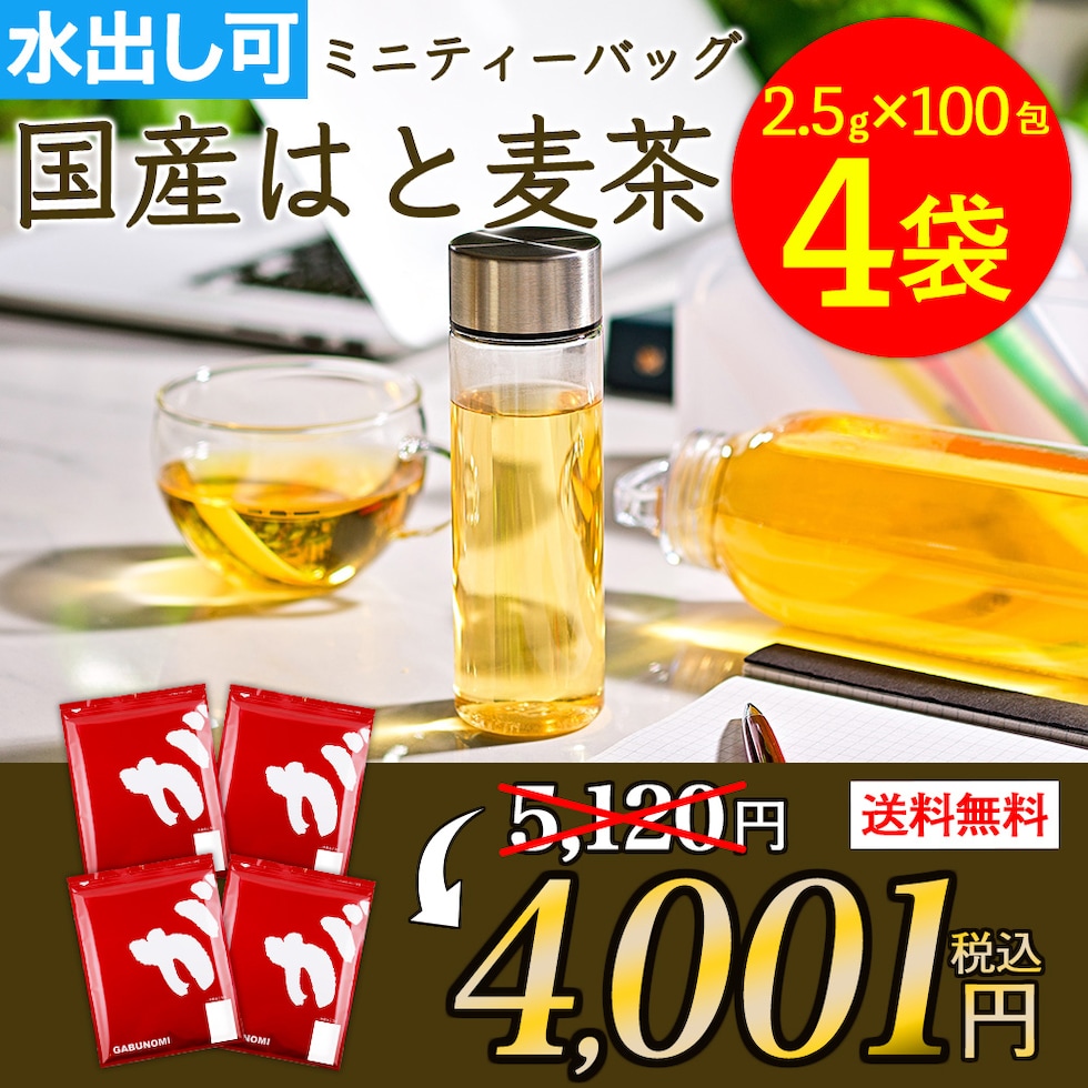【通常5,120円→4,001円!】国産はと麦茶 福袋 400包 2.5g×100包×4袋 はとむぎ茶 ハト麦茶 ハトムギ茶 鳩麦茶 鳩むぎ茶 麦茶 お茶 健康茶 ノンカフェイン 美容茶 パック 植物由来 ティーバッグ ティーパック 水出し 人気健康茶 ふくちゃの福袋 sp