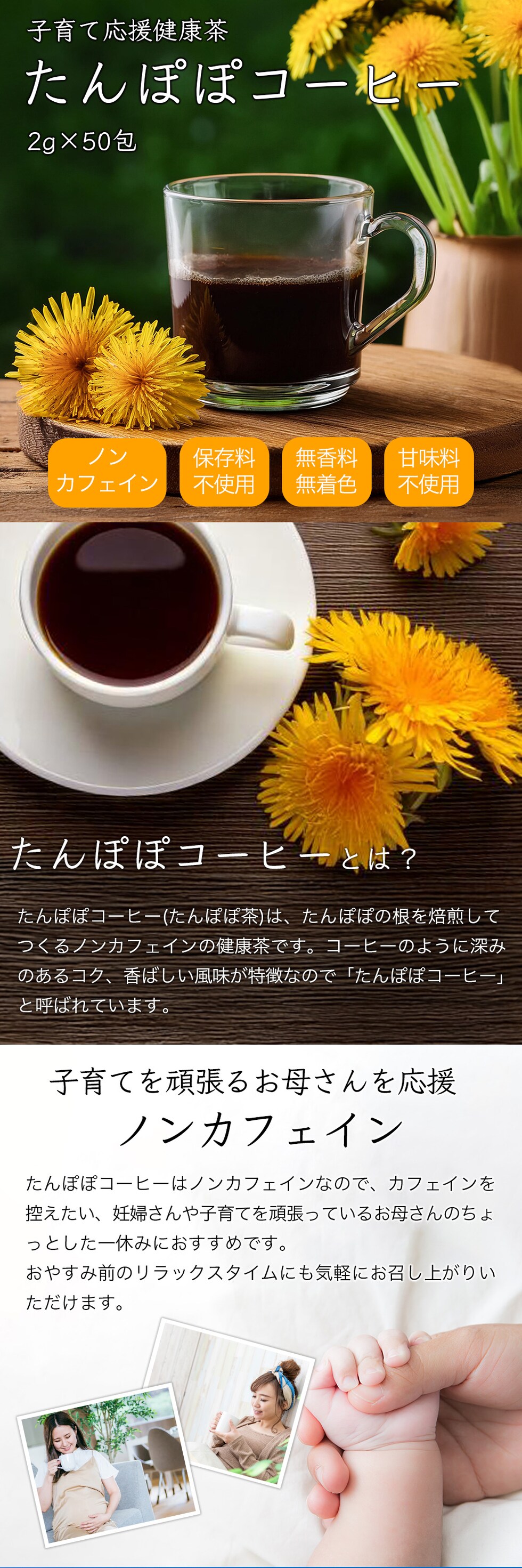 たんぽぽコーヒー たんぽぽ茶 ノンカフェイン お茶 健康茶 育児サポート タンポポコーヒー タンポポティー ダンデライオンティー 蒲公英茶 植物由来 ティーバッグ ティーパック パック 100g 50包 2g×50包 ふくちゃ 福袋 送料無料