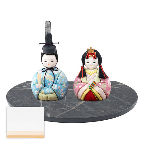 雛人形 コンパクト おしゃれ 最新 木目込み お雛様 かわいい ひな人形 ぷりふあ Halfmoon -半月- 平飾り ケース飾り 親王飾り 【桜実・大理石調グレー ナチュラルケース】 インテリア モダン おひなさま 雛 今どき