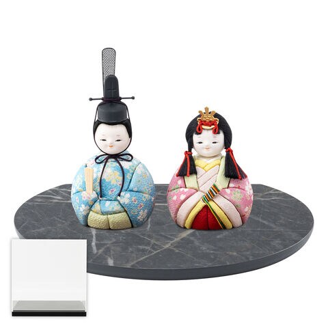 雛人形 コンパクト おしゃれ 最新 木目込み お雛様 かわいい ひな人形 ぷりふあ Halfmoon -半月- 平飾り ケース飾り 親王飾り 【桜実・大理石調グレー ブラックケース】 インテリア モダン おひなさま 雛 今どき