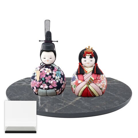 雛人形 コンパクト おしゃれ 最新 木目込み お雛様 かわいい ひな人形 ぷりふあ Halfmoon -半月- 平飾り ケース飾り 親王飾り 【咲歩・大理石調グレー ブラックケース】 インテリア モダン おひなさま 雛 今どき