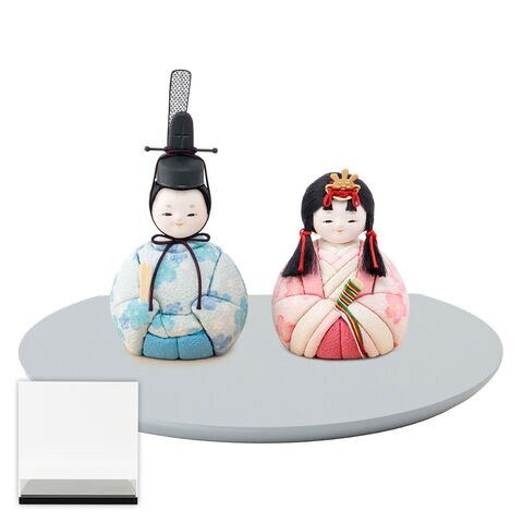 雛人形 コンパクト おしゃれ 最新 木目込み お雛様 かわいい ひな人形 ぷりふあ Halfmoon -半月- 平飾り ケース飾り 親王飾り 【水彩・グレー ブラックケース】 インテリア モダン おひなさま 雛 今どき