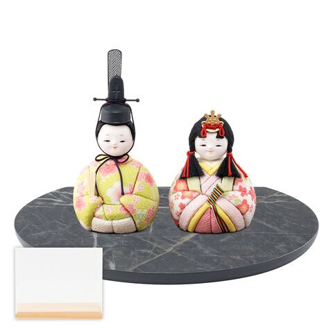 雛人形 コンパクト おしゃれ 最新 木目込み お雛様 かわいい ひな人形 ぷりふあ Halfmoon -半月- 平飾り ケース飾り 親王飾り 【乃々・大理石調グレー ナチュラルケース】 インテリア モダン おひなさま 雛 今どき