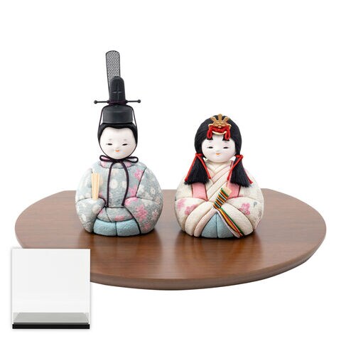 雛人形 コンパクト おしゃれ 最新 木目込み お雛様 かわいい ひな人形 ぷりふあ Halfmoon -半月- 平飾り ケース飾り 親王飾り 【瑠莉・ウォールナット ブラックケース】 インテリア モダン おひなさま 雛 今どき