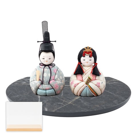 雛人形 コンパクト おしゃれ 最新 木目込み お雛様 かわいい ひな人形 ぷりふあ Halfmoon -半月- 平飾り ケース飾り 親王飾り 【瑠莉・大理石調グレー ナチュラルケース】 インテリア モダン おひなさま 雛 今どき