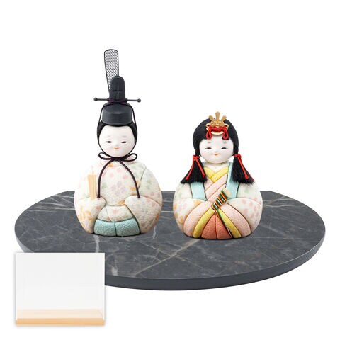 雛人形 コンパクト おしゃれ 最新 木目込み お雛様 かわいい ひな人形 ぷりふあ Halfmoon -半月- 平飾り ケース飾り 親王飾り 【樹果・大理石調グレー ナチュラルケース】 インテリア モダン おひなさま 雛 今どき