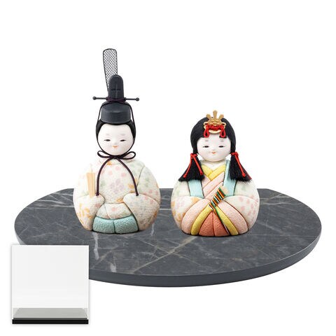 雛人形 コンパクト おしゃれ 最新 木目込み お雛様 かわいい ひな人形 ぷりふあ Halfmoon -半月- 平飾り ケース飾り 親王飾り 【樹果・大理石調グレー ブラックケース】 インテリア モダン おひなさま 雛 今どき