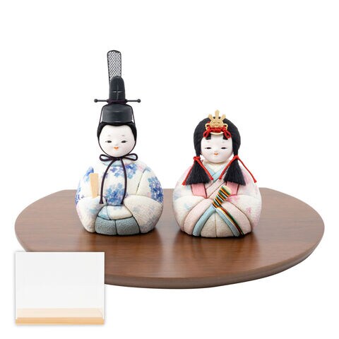雛人形 コンパクト おしゃれ 最新 木目込み お雛様 かわいい ひな人形 ぷりふあ Halfmoon -半月- 平飾り ケース飾り 親王飾り 【紫陽・ウォールナット ナチュラルケース】 インテリア モダン おひなさま 雛 今どき